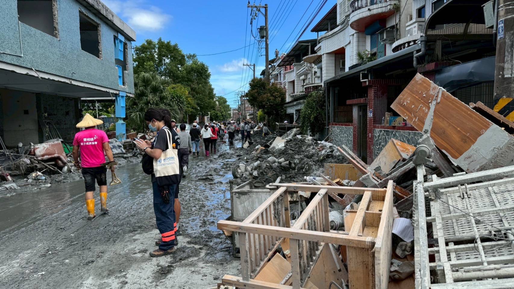光復市區一片泥濘、部份路段在大型機具的進駐下已漸漸清出道路,敦厚路最裡面因泥漿太厚,一不小心腳就會陷進去。災後垃圾,大量泥漿目前採集中放置,統一清運,個人家中清理大多招募親朋好友來幫忙。泥漿已部份固化非常重且黏著性強,理事長與志工徒步進市區幫忙清理災民家裡,發現真的很困難,空氣中也已經開始瀰漫臭味.夾雜爛泥漿,水溝味.還有類似食物腐臭味道.化學兵進駐開始消毒,接下來可能要面對環境.衛生,健康等問題..提醒如果要去當志工的人務必戴口罩.雨鞋,自備水,乾糧,體力,才能真的幫忙災民,不建議盲目的進入,救災不要造成當地人的困擾。