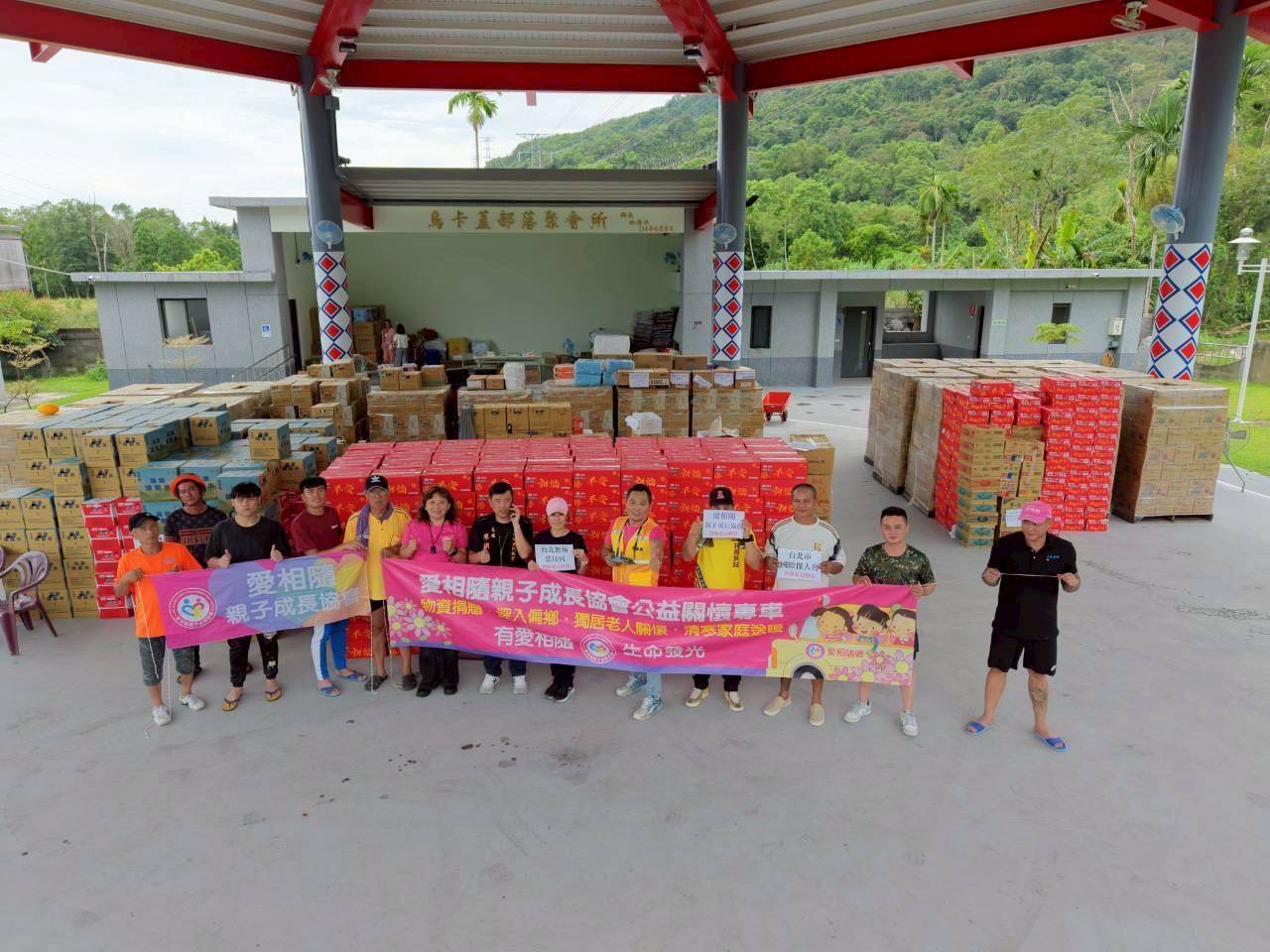 愛相隨親子成長協會多年來持續關懷花蓮從不間斷、8月才到光復鄉送物資並參加豐年祭、看見光復鄉遭遇災難、協會立刻動員、號召愛心人士共同募集大量物資26號清晨抵達光復鄉烏卡蓋部落物資整合站,由光復鄉民代表會主席廖翊鈞所成立的烏卡蓋救災暨物資發放指揮所統籌物資發放給災民。愛相隨理事長黃麗霙與台灣瘋系列吳東賢理事長還親自開車幫忙一家一家的送物資、送到部落和需要的災民家中。不僅捐物資、送物資、還到災民家中協助清理家園﹐徒步走遍市區了解災民迫切的需求和安慰那些災民、心疼光復「一次的天災,就毀了許多人一生的努力!」。