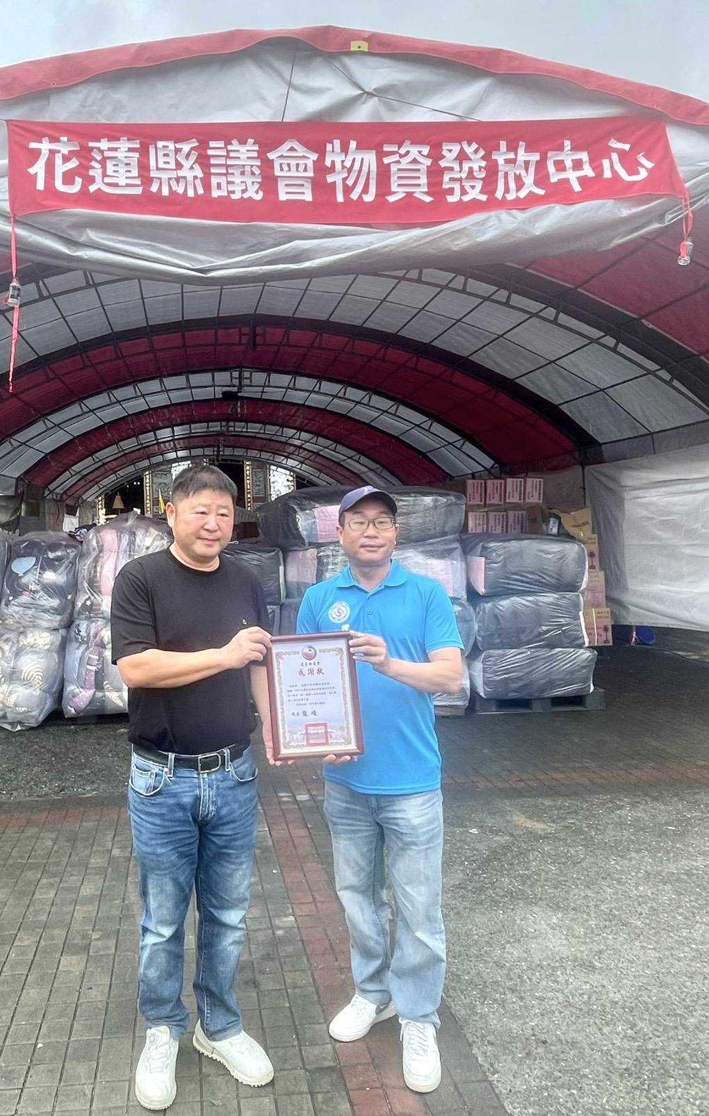 花蓮縣議會張峻議長接受哀新社團捐贈並代表縣議會致贈感謝狀