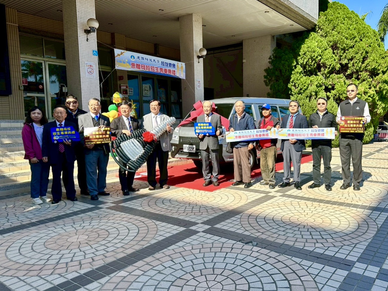 建國科技大學於11月20日舉行溫馨的捐贈儀式,由校友總會號召理監事共襄盛舉,捐贈一部全新的三菱得利卡客貨兩用箱型車,作為學校招生專車,並作為賀禮獻給母校60週年校慶。儀式由校方一級主管親自見證,現場氣氛熱絡,象徵校友情誼與建國精神延續。