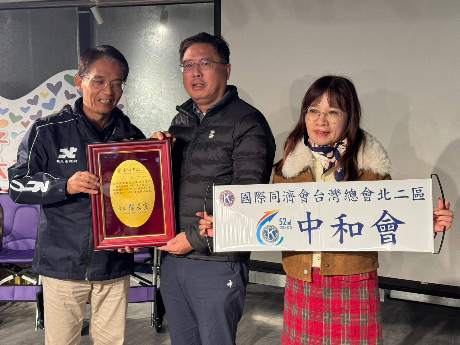 市府邱敬斌秘書長代表市長回贈銅質感謝獎牌給中和同濟會