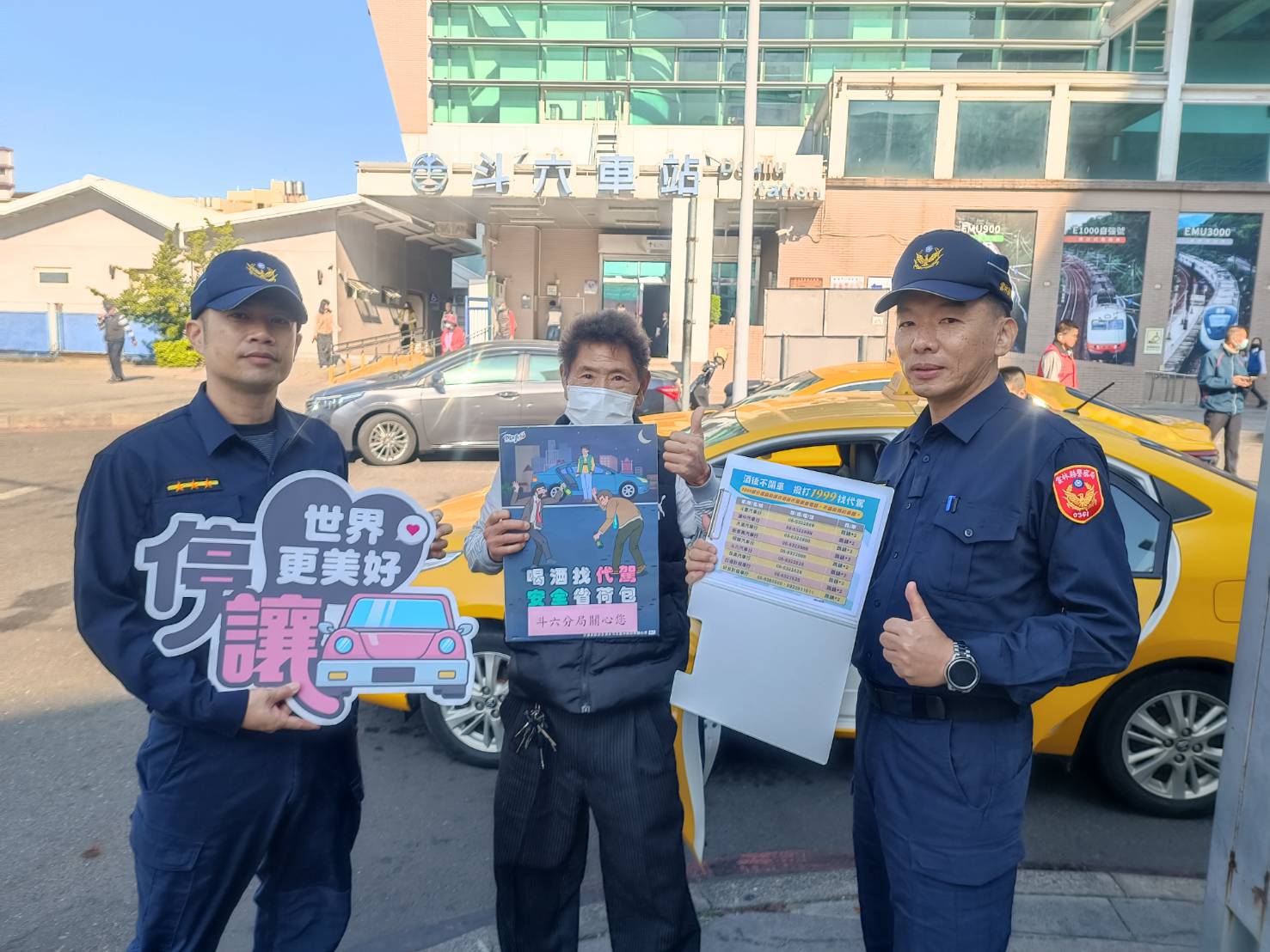 斗六分局員警實地走訪計程車行,與業者交流春節期間載客及代駕需求情形,並於斗六火車站向返鄉及出遊民眾發放宣導資料,強調酒後駕車除面臨高額罰鍰、吊扣(銷)駕照外,亦可能造成無法挽回的憾事,呼籲民眾切勿心存僥倖。