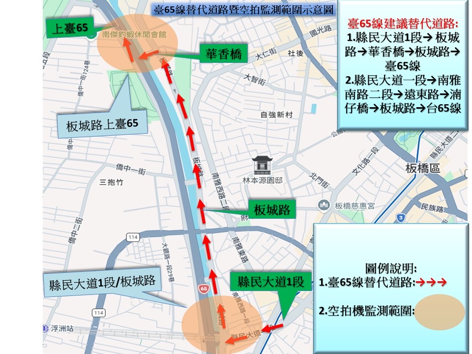 板橋分局表示:春節期間將針對縣民大道、府中路、文化路、中山路、四川路、浮洲橋等重要聯外幹道及橋樑加強交通疏導,並視車流狀況運用無人機執行高空巡查。勤務指揮中心可即時接收影像,迅速掌握回堵情形,採取「即時發現、立即疏導」機動策略,一旦發生事故或壅塞,將第一時間調派線上警力排除,縮短民眾等待時間。