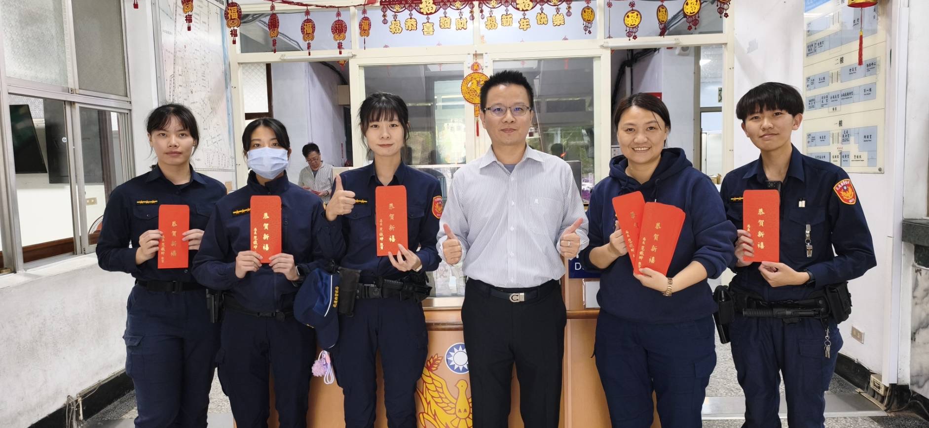 警察工作365天、24小時不打烊,全年無休守護治安、交通及為民服務。當民眾在溫暖被窩中安然入夢之際,員警早已投入勤務,也必須犧牲與家人團聚共享天倫的時光,全心投入各項警政工作,以無私付出與高度熱忱,守護鄉親平安過好年。員警收到紅包時紛紛表示感謝分局長除夕親自到各單位慰問打氣,真的好用心。紅包上特別印製「駿馬奔騰迎新歲 吉星高照報平安」吉祥賀詞,象徵新的一年策馬向前、萬事順遂。