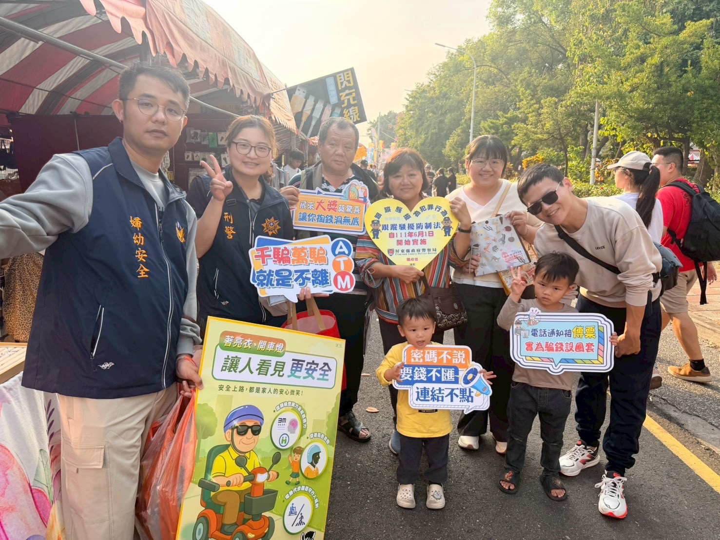 潮州春節市集自2月16日(除夕)起至2月20日(初四)熱鬧登場,吸引大量返鄉及觀光人潮,潮州分局宣導團把握人潮聚集時機,深入市集攤位與主要動線,加強交通安全宣導,並同步推廣反詐騙及婦幼安全觀念,全面守護鄉親平安過好年。